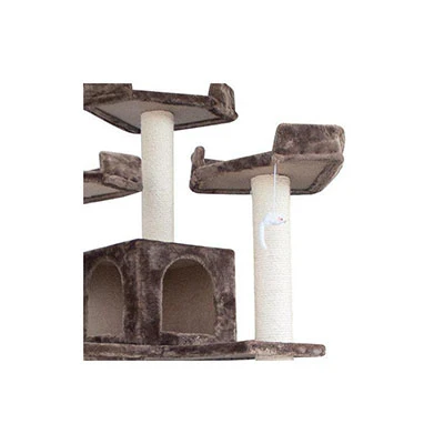 Árbol rascador para gatos con cinco niveles que crean distintas áreas de juego ideales para afilar las uñas y evitar el estrés en casa. Dispone de dos cuevas diseñadas para el descanso, además de varios juguetes colgantes que captarán la atención del gato. Color marrón. Medidas: 50 x 60 x 176 cm