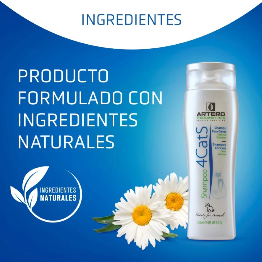 Champú para gatos, apto para todo tipo de pelo, muy suave e hidratante, devuelve al pelo su brillo y volumen habitual, dejándolo suave y sedoso. Formato de 250ml.