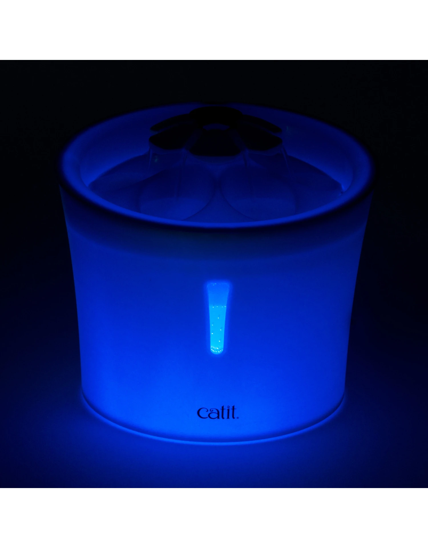 Fuente de agua para gatos con luz LED nocturna y tapa de pétalos. La parte superior de pétalos le permite a tu gato beber incluso cuando la fuente está apagada. Cuenta con una práctica ventana indicadora del nivel de agua con luz LED nocturna. Permite 3 flujos de agua diferentes para bebedores quisquillosos. Incluye filtro de triple acción para limpiar el agua en todo momento. Libre de BPA (todos los componentes excepto el adaptador).