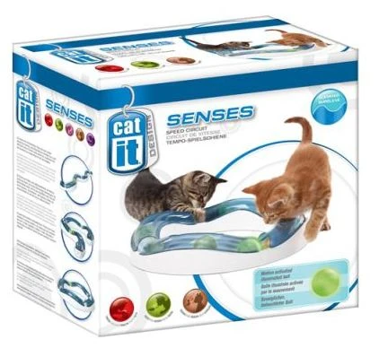 El juguete interactivo para gatos Catit Senses Circuito Rapido Iluminado estimula el juego entreteniéndose y al mismo tiempo potenciando el sentido del tacto, oido y vista. Este juguete cuenta con zonas elevadas que provocan un movimiento más rápido de la bola en determinados tramos. La bola iluminada se activa con el movimiento, llamando la atención del gato. Su diseño transparente permite al gato en todo momento ver la bola para poder perseguirla. Pueden añadirse más piezas al circuito que se venden por separado.