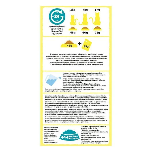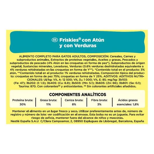 *equivalente a 4% pescados y subproductos de pescado, con mín. 4% atún en croquetas en forma de pez, equivalente a 3% atún en el producto.