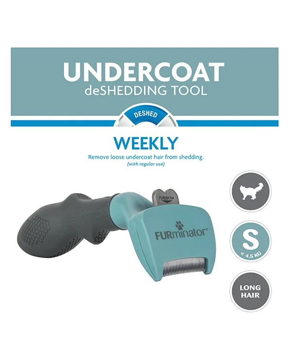 FURminator® Undercoat deShedding Tool para gatos pequeños de pelo largo elimina el 99 % del pelo suelto procedente de la muda. Además, ayuda a reducir las bolas de pelo. Úselo 1 o 2 veces a la semana en sesiones de 10 a 20 minutos sobre el pelo seco.
