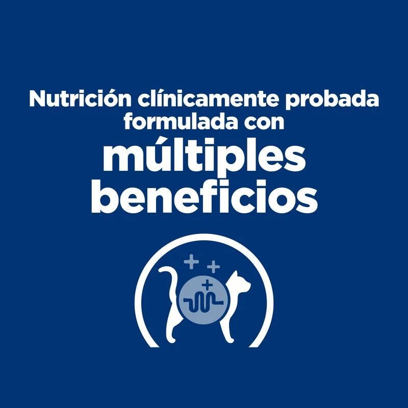 Beneficios clave de Hill’s w/d para gatos:Bajo en calorías y grasa para ayudar a mantener el peso ideal.Elevada cantidad de fibra que contribuye a la saciedad, reduce el apetito y ayuda a agilizar el tránsito intestinal.Con L-carnitina contribuye a una reducción de peso más rápida y al mantenimiento de la masa muscular magra.Ayuda a neutralizar los radicales libres gracias a su contenido elevado de antioxidantes.Proporciona un excelente sabor y facilita la mezcla con el alimento seco que a tu gato le encantará.