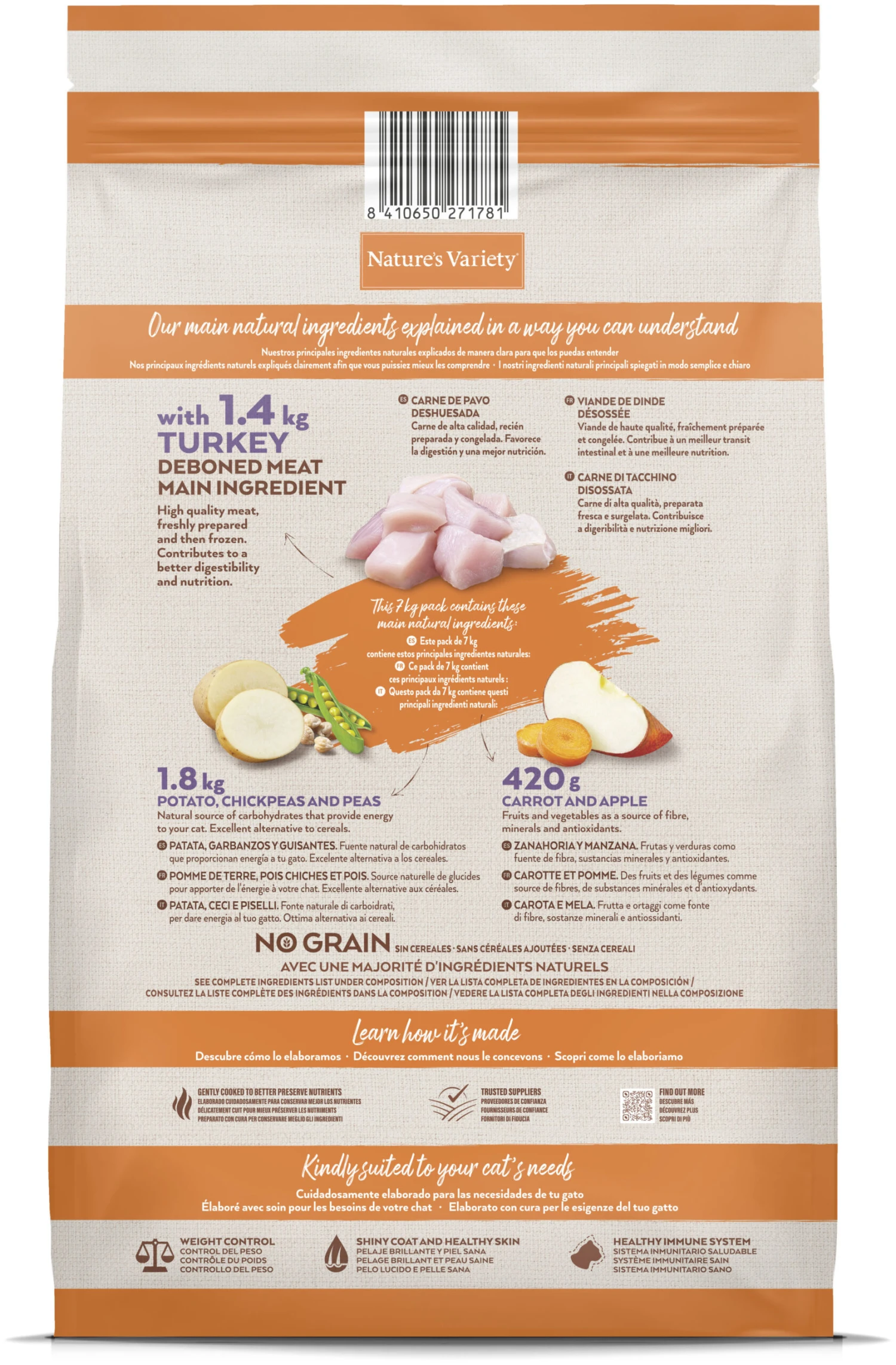 Ingredientes Original Grain Free Sterilized Pavo Nature’s Variety
