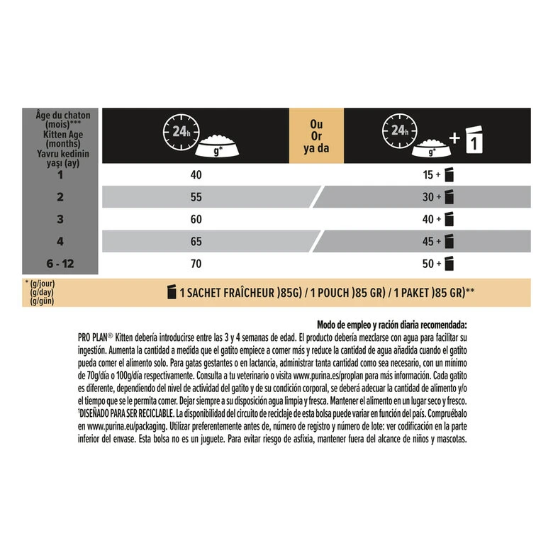 Asegúrate con Purina Pro Plan Kitten de que tu gatito crece sano, con todos los nutrientes necesarios para la mejora de su sistema inmunitario, su pelaje y su tracto digestivo.