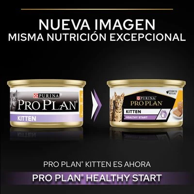 ¡La comida húmeda PURINA PRO PLAN Kitten Healthy Start contiene ingredientes cuidadosamente seleccionados y fáciles de digerir para ofrecerle a tu gatito la alimentación que necesita y con un sabor que le encantará!
