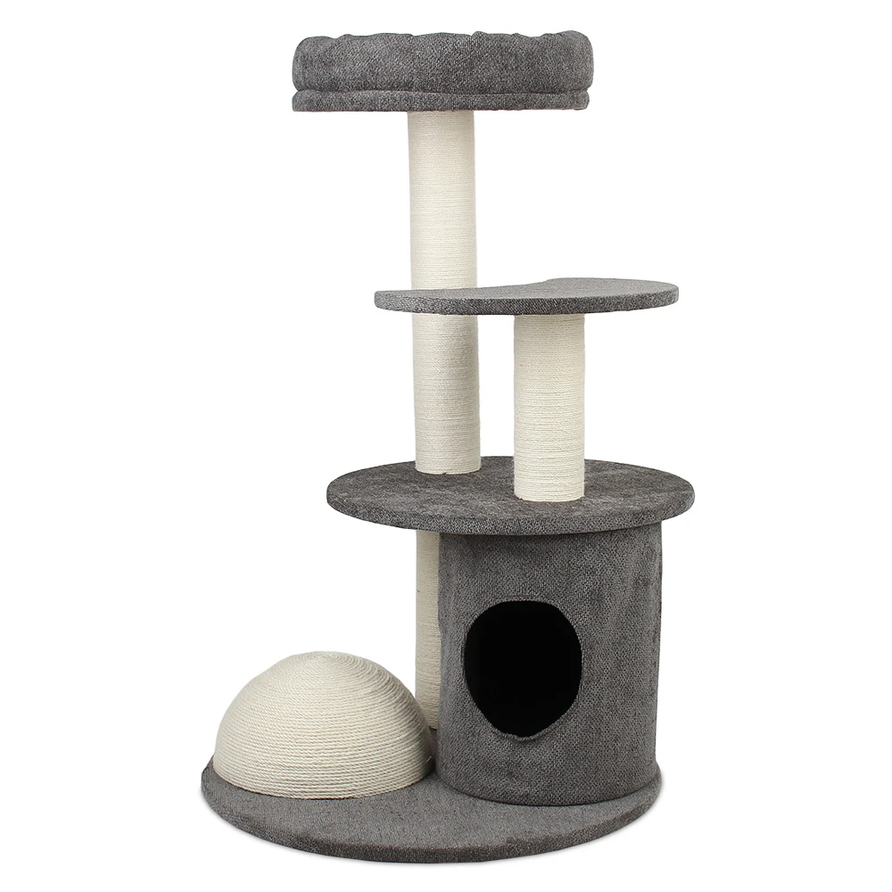 Los rascadores son un elemento imprescindible y necesario en toda casa habitada por gatos. Los rascadores concentran toda su atención rascadora y logran que se olviden de sofás, cortinas y otros muebles que podrían sufrir sus arrebatos gatunos. Rascador de tres pisos, con postes de yute de color blanco y platafomas y habitáculo en colore gris. Ideal para gatos inquietos o casas en las que hay varios felinos. Los rascadores son un elemento imprescindible y necesario en toda casa habitada por gatos. Los rascadores concentran toda su atención rascadora y logran que se olviden de sofás, cortinas y otros muebles que podrían sufrir sus arrebatos gatunos.