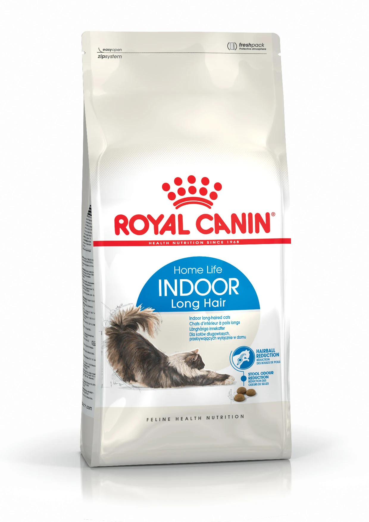 Royal Canin Indoor Long Hair Pienso para gatos con pelo largo que viven exclusivamente en casa. Fomenta el brillo del pelo y la salud de la piel, ayuda a reducir las bolas de pelo y el olor de las heces y es rico en proteínas. El pelo largo es precioso pero también requiere muchos cuidados. El pienso Royal Canin Indoor Long Hair ayuda a tu gato de interior con el cuidado diario del pelo. El problema principal de los gatos de pelo largo es la formación de bolas de pelo debido a la acumulación de pelos ingeridos. Estas bolas provocan incómodos vómitos en los gatos y afectan su bienestar y su sistema digestivo. Este pienso contiene una mezcla exclusiva de fibras y zaragatona que fomenta el tracto digestivo y, con ello, también el tránsito de los pelos. El contenido de proteína y grasa de este alimento está adaptado al nivel de actividad de los gatos que viven exclusivamente dentro de casa con el fin de ayudar a controlar el peso. Todas las características de un vistazo: Pienso equilibrado para gatos de pelo largo que viven en casa Royal Canin Indoor Long Hair Receta completa La fórmula especial apoya tanto la salud como el pelo largo de tu minino. Royal Canin Indoor Long Hair Crujientes e innovadoras Las croquetas deliciosas y especialmente adaptadas aumentan la aceptación de la comida. Combate las bolas de pelo: pueden provocar vómitos y pérdida de nutrientes Altamente digestible: la zaragatona y las proteínas de elevada digestibilidad fomentan la digestión y reducen el olor de las heces Abundantes proteínas: para cubrir las necesidades de tu gato Contenido adaptado de grasa: indicado para gatos de interior Aporte equilibrado de minerales: apoya las vías urinarias