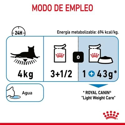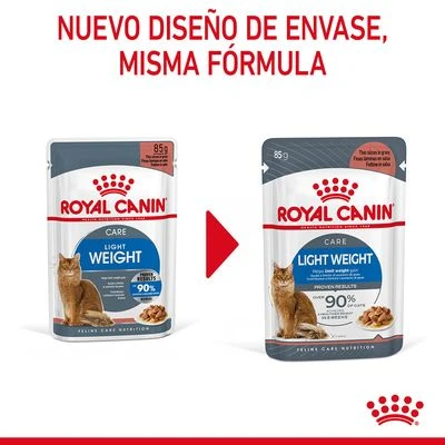 Royal Canin Light Weight Care en salsa es una deliciosa comida húmeda para gatos con tendencia al sobrepeso. Es un alimento bajo en calorías que puede ayudar a prevenir el sobrepeso. Gracias a ello, tu gato podrá seguir consumiendo la misma cantidad de comida sin aumentar de peso. Además, estos irresistibles bocaditos en salsa contienen muchas proteínas para ayudar a mantener la masa muscular durante el periodo de adelgazamiento. Así, tu bigotudo podrá explorar su entorno como de costumbre y mantenerse ágil para saltar, trepar y llevar una vida activa.