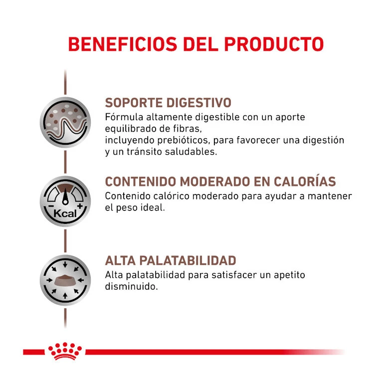 El formato Gastro Intestinal Moderate Calorie de Royal Canin está creado de manera específica para reducir el riesgo de trastornos agudos de la absorción intestinal.