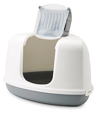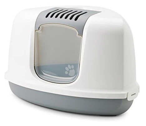 Bandeja higiénica de forma triángular y cerrada con puerta para gatos. Con filtro para evitar escape de olores. Elaborado en un material resistente, duradero y fácil de limpiar.